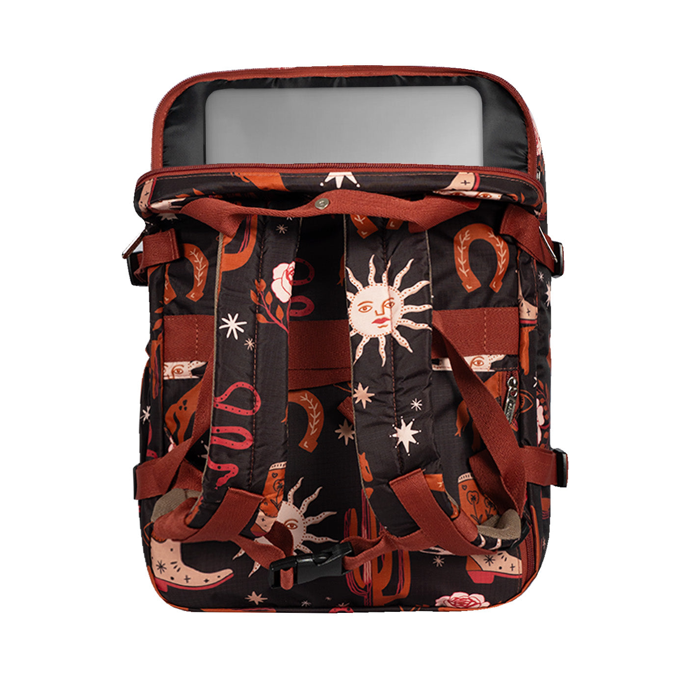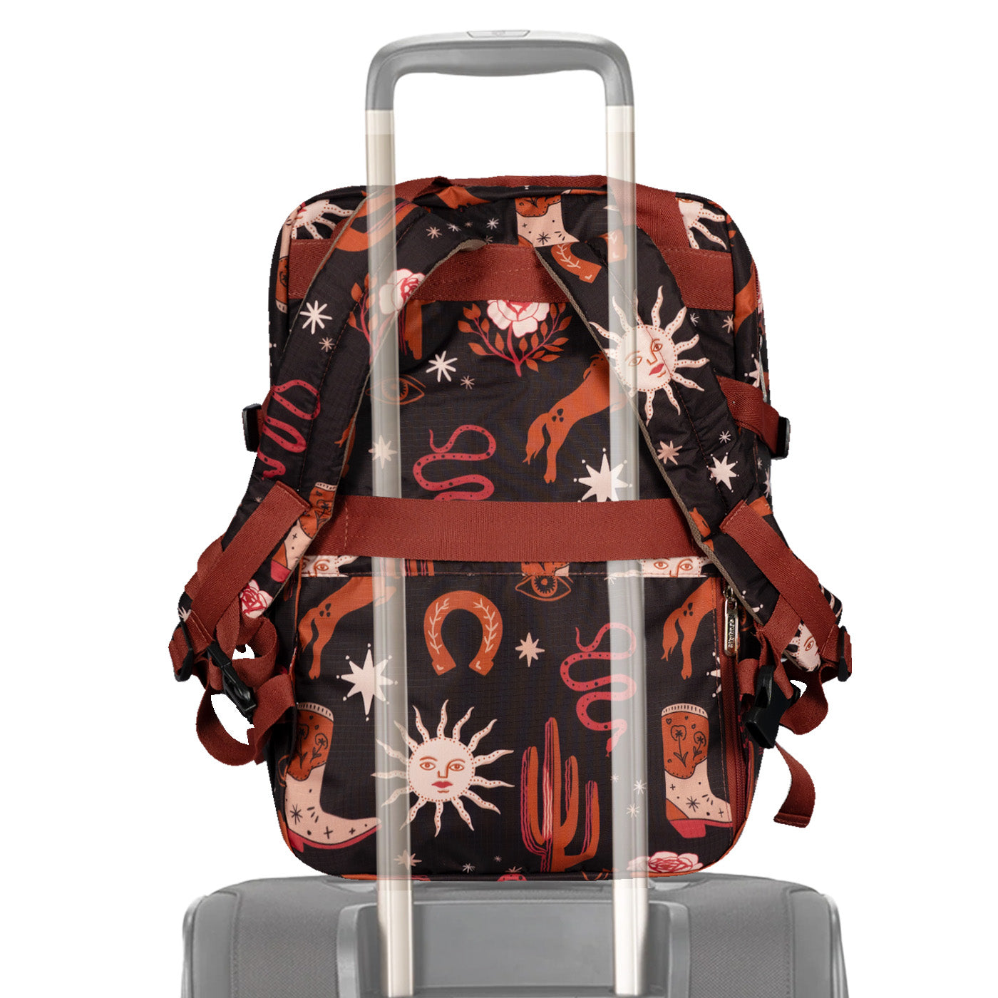 Ergonomía y confort: Cargaderas acolchadas y ajustables, espaldar con espuma para mayor comodidad, y correa trasera para sujetar al carry-on.