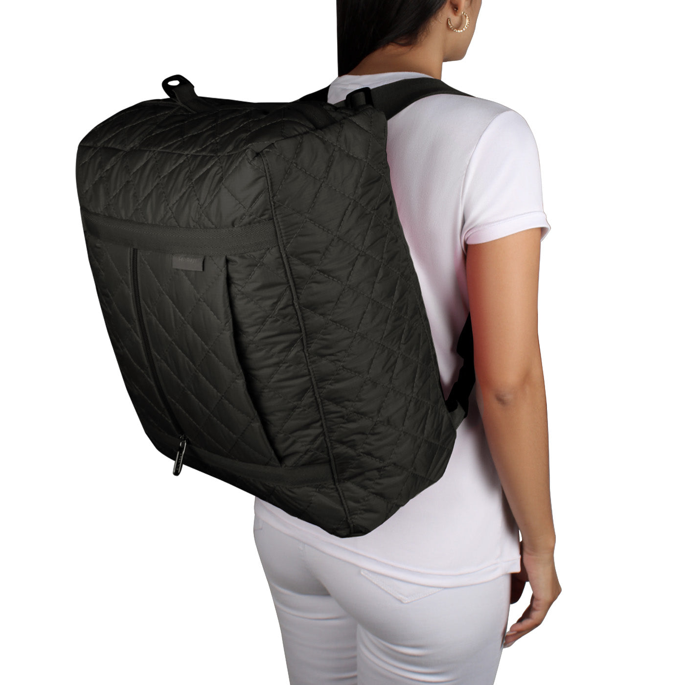 Con medidas abierta de 43cm x 35cm x 19cm tiene una capacidad de 28 litros y es fácil de doblar y guardar. Puedes colocarla en tu maleta de ruedas o llevarla al hombro. Úsala como equipaje de mano o como artículo personal en las aerolíneas low cost.