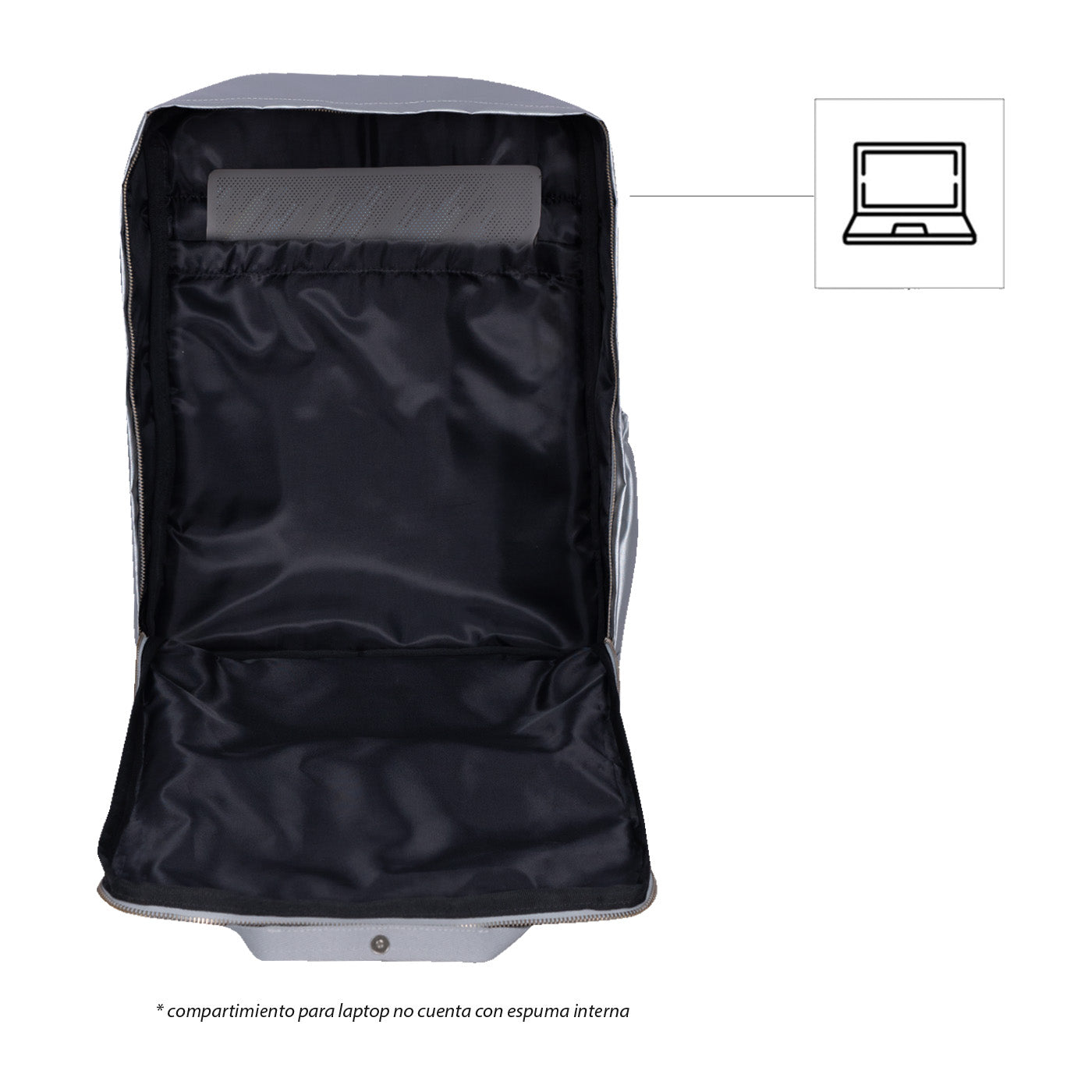 Diseño funcional: El morral cuenta con un compartimiento principal con doble deslizador y apertura en U, que permite un fácil acceso a tus pertenencias. Además, tiene múltiples bolsillos, incluyendo uno frontal con cremallera, un lateral para tu termo y un bolsillo trasero con cremallera para laptop de hasta 15".