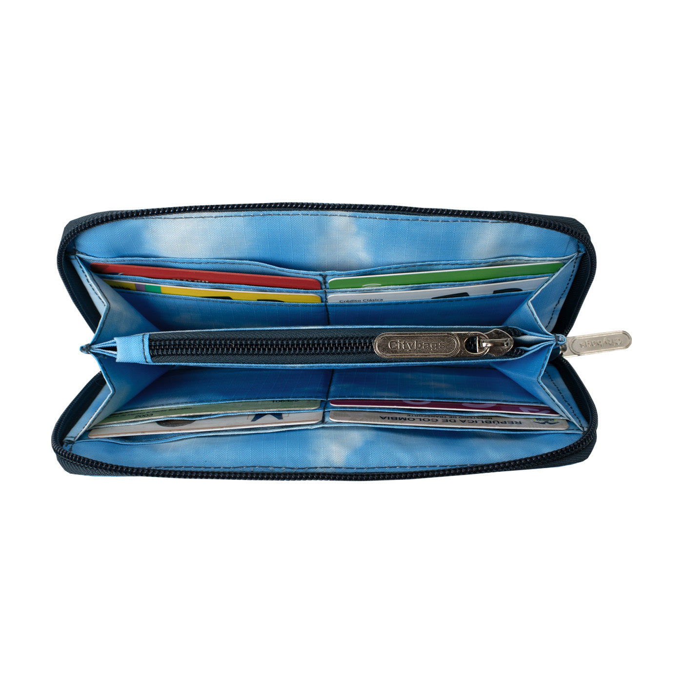 Billetera con cremallera y muchos bolsillos organizadores, para que lleves tus documentos con seguridad y estilo