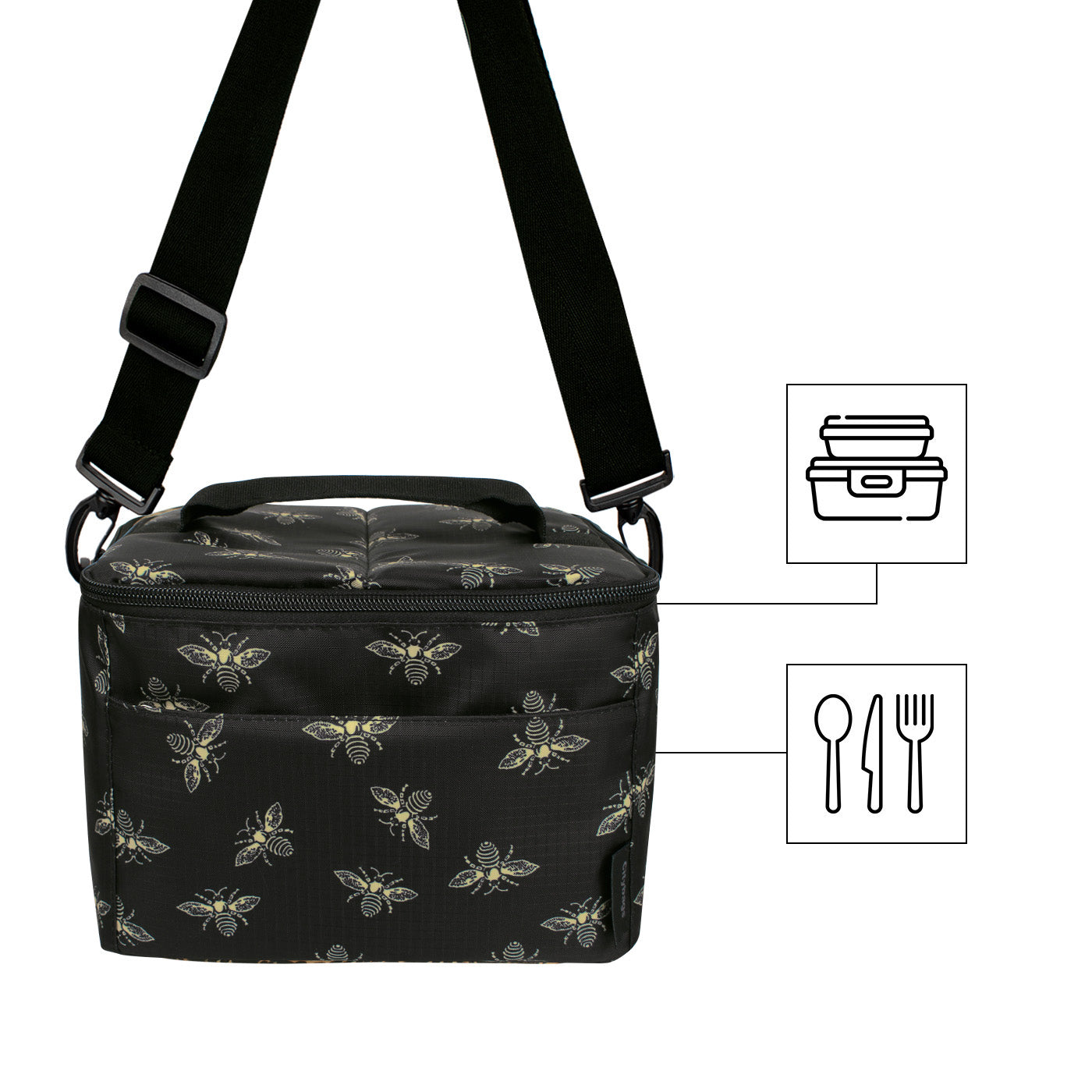Además, esta lonchera es conveniente y portátil. Cuenta con una agarradera reforzada en la parte superior y una correa de ajuste al hombro suave para garantizar un transporte cómodo. El diseño de apertura amplia hace que sea fácil llenar y tomar alimentos.