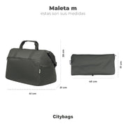 La Maleta Plegable M es la opción perfecta para tus viajes de fin de semana o para ir al gimnasio es liviana, resistente a la suciedad y a la humedad. Con medidas abierta de 41x28x21 cm tiene una capacidad de 24 Litros; es fácil de plegar y guardar. Puedes llevarla a mano o al hombro, y su gran capacidad y resistencia la hacen ideal para llevar todo lo que necesitas.